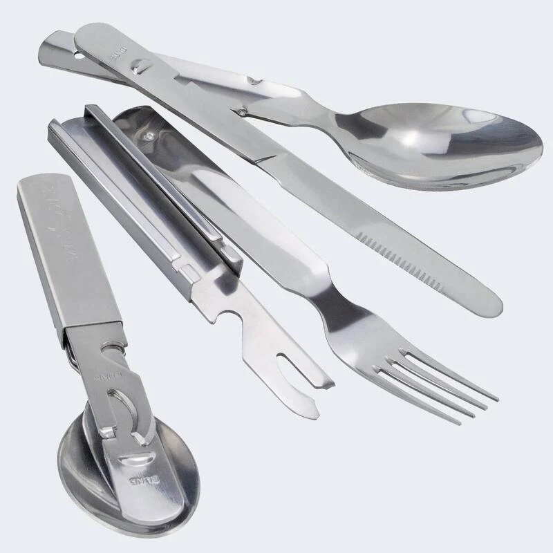 · couverts: fourchette, couteau, cuillère, ouvre-bouteille & ouvre-boîte