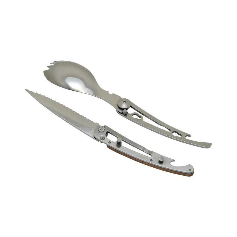 Ce kit couverts a été conçu pour les repas du trekkeur et du randonneur.Couverts ultra-légers et compacts en inox 59 g. 5 fonctions (couteau + cuillère/fourchette + ouvre-boîte + décapsuleur).