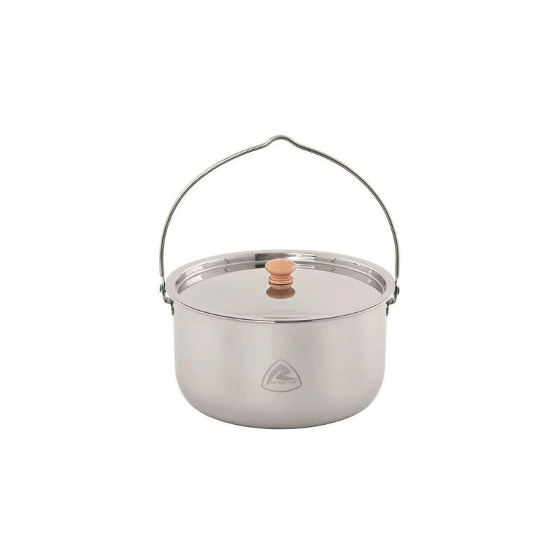 Une magnifique poêle en acier inoxydable robuste avec un manche spécial équipé d’un crochet. Le couvercle est doté d’un manche en bois résistant à la chaleur.