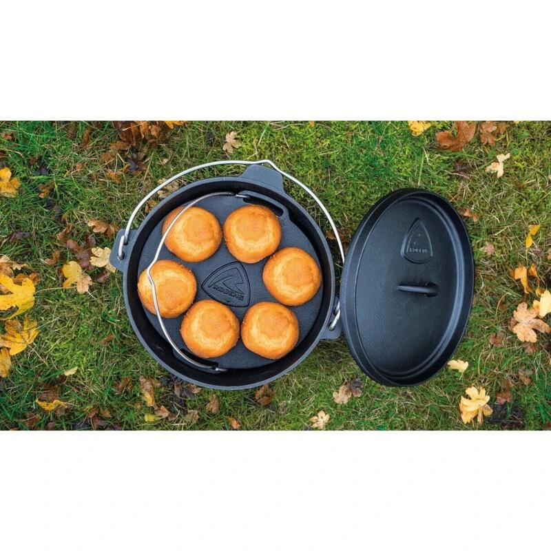 Dégustez un délicieux muffin fraîchement cuit en plein air en camping avec cette poêle et ce four à Dutch oven. Parfait pour toute la famille à savourer.